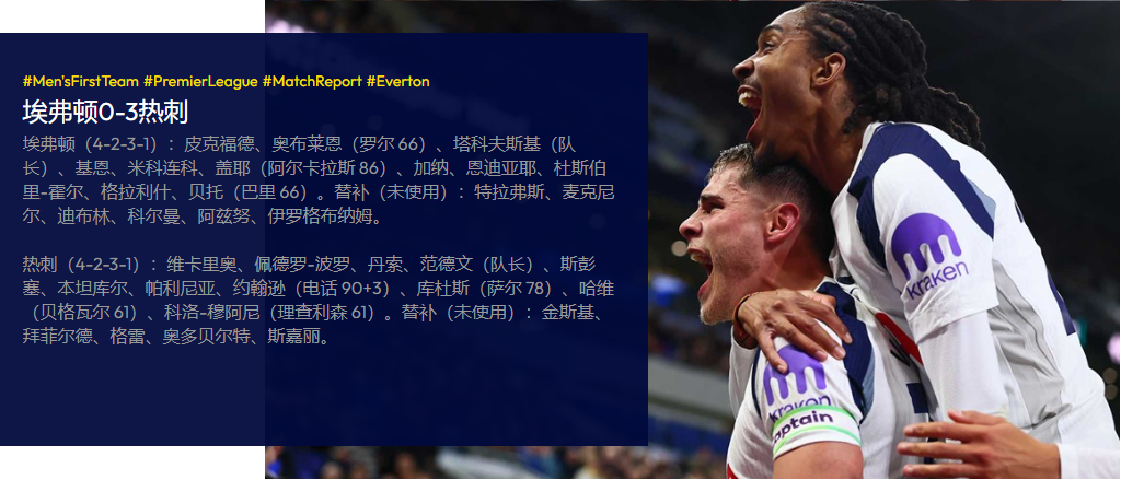 我们在球场的各个方面都非常出色,我们的后防线尤其强大,因为主队用大量的传中轰炸了我们,凯文·丹索和米基·范德文在我们的防线中表现出色,而我们的荷兰队长也在上半场打进了两个进球,为胜利奠定了基础。他在两个角球中近距离头球破门,让我们在定位球中付出了代价,让我们在中场休息时取得了两球优势,而埃弗顿在VAR干预后将比分改写为1-0,进球被判无效。